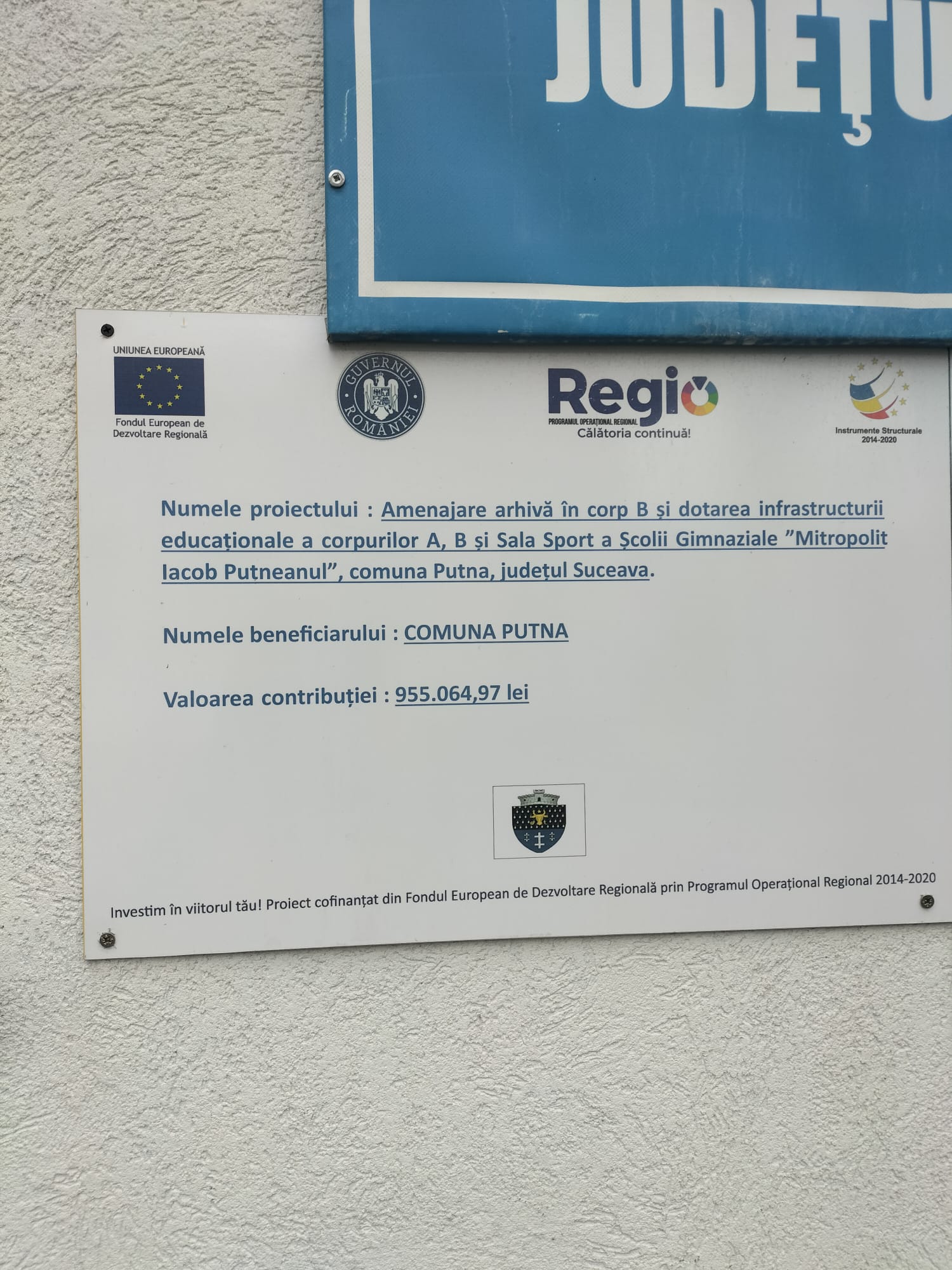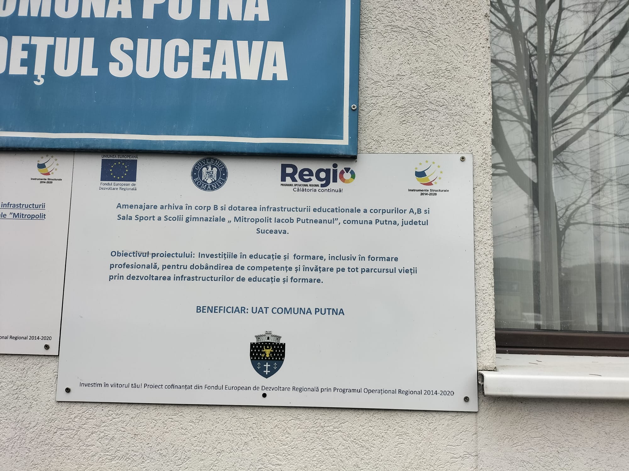 UAT COMUNA PUTNA a implementat în perioada 02.05.2022 – 31.12.2023 proiectul „Amenajare arhiva în corp B si dotarea infrastructurii educationale a corpurilor A,B si Sala Sport a Scolii gimnaziale „ Mitropolit Iacob Putneanul”, comuna Putna, judetul Suceava” cod SMIS 124565, finanțat prin Programul Operațional Regional 2014 – 2020, Axa prioritară 10 Îmbunătățirea infrastructurii educaționale, Prioritate de investiții 10.1 Investițiile în educație, și formare, inclusiv în formare profesională, pentru dobândirea de competențe și învățare pe tot parcursul vieții prin dezvoltarea infrastructurilor de educație și formare.